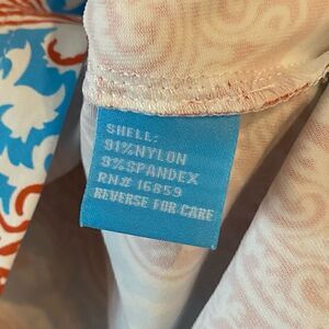 J. McLaughlin S Blue Orange Bali Design Round Neck Long Sleeve Top