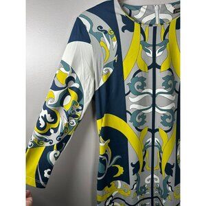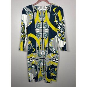 J. McLaughlin Sheath Dress Catalina Cloth Mosiac Blue Green Work Travel Small
