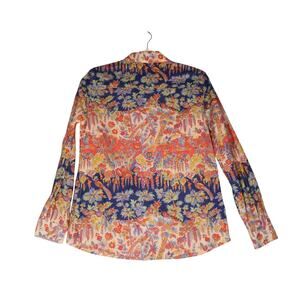 J McLaughlin Shirt Womens Small Blue Floral 100% Cotton Career Casual Boho