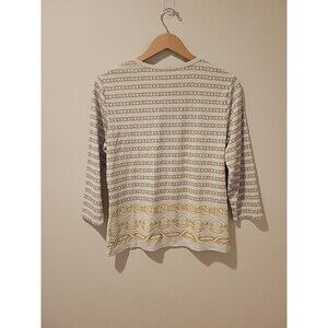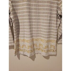 J McLaughlin Signature Catalina Cloth Ivory/Gold Chain Equestrian Top L Preppy