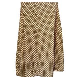 J. McLaughlin Silk Neutral/Tan/Beige & White Geometric Pattern Straight Leg Mid/High Rise Trousers Pants Size 14