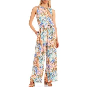 J. McLaughlin Size LG Sleeveless Palm Print Wide Leg Sleeveless Rebekka Jumpsuit