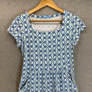 J. McLaughlin Size Small Blue White Geometric Print Short Sleeve Dress Pockets