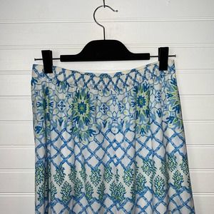 J McLaughlin Size Small Bohemian Modern Preppy Nautical SILK Artsy Maxi Skirt