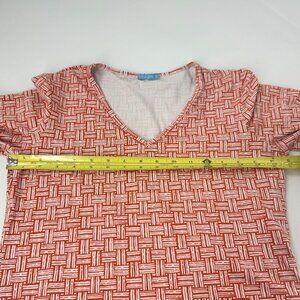 This tunic top by J. McLaughlin features a geometric pattern in red and white, offering a stylish option for casual wear. The long sleeves and V-neck design provide a comfortable fit, while the breathable fabric ensures ease of wear.