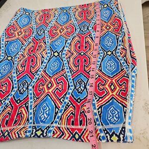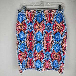 EUC! Elevate your wardrobe with this J. McLaughlin reversible knit stretch pencil skirt. Featuring a vibrant ikat pattern, it's perfect for versatile styling.