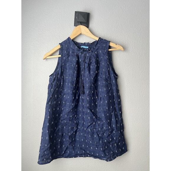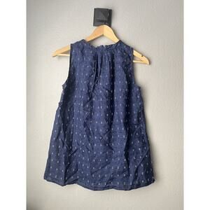 J. McLaughlin Sleeveless Blue Swiss Dot Chambray Linen Cotton Blend Top XSmall