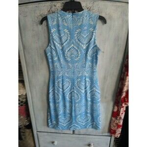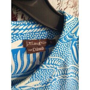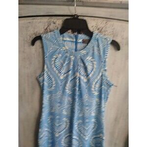 The Jay McLaughlin Sleeveless Floral Knee Length Tie Front Dress in size Small is a stylish and versatile piece perfect for the bohemian fashionista. The dress features a beautiful floral pattern in shades of blue, with a tie front closure adding a unique touch to the A-line silhouette. Ideal for all seasons, this knee-length dress is perfect for those who love the beachy and carefree boho look.