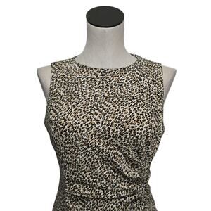 J McLaughlin Sleeveless Ruched Animal Print Sheath Dress Size 4 Fitted Preppy