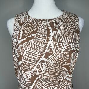 J. McLaughlin Sleeveless Sheath Dress Size 4 Brown White Geo Palm Print Resort