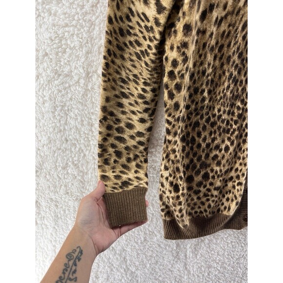 J. McLaughlin Small Cardigan100% Cashmere Brown Animal Print Button Sweater