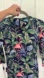 Elegant navy dress with vibrant floral and flamingo print. Features long sleeves and a fitted silhouette. So comfortable! Perfect for any occasion.