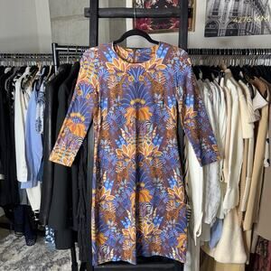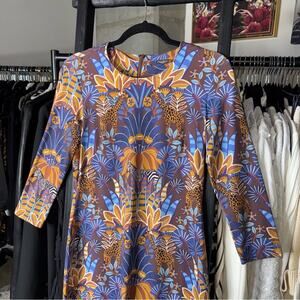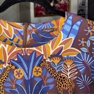 J. McLaughlin Sophia Safari Print Dress Brown Blue Gold