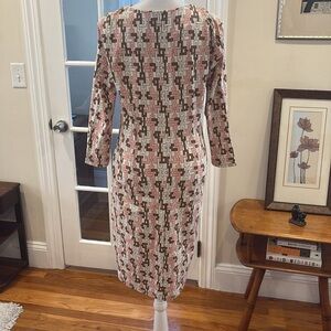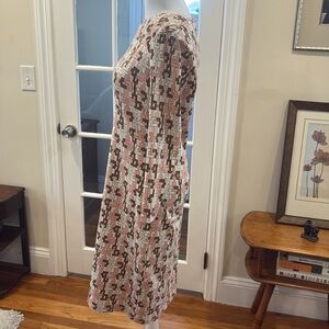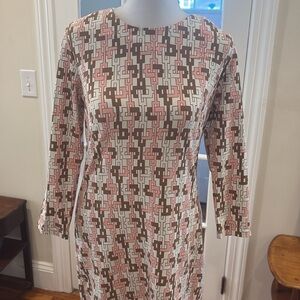 J McLaughlin Sophia dress. Off white/pink Islet link design. Back zipper. Long sleeve. Size S. Measurements are 18” from armpit to armpit and 37” long.