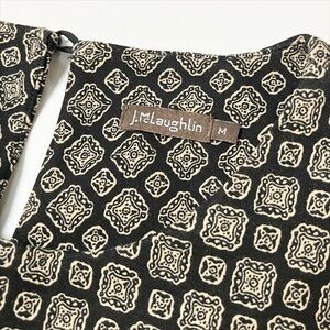 J. McLaughlin Stretch Knit Sheath Dress Medium black tan damask print pockets neutral office career work business