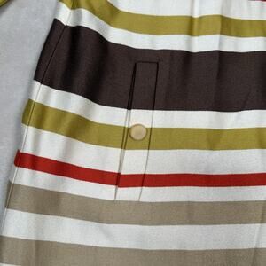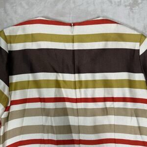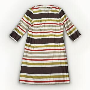 J McLaughlin Striped Shift Dress Red Green Brown 3/4 Sleeve Pockets Size 6