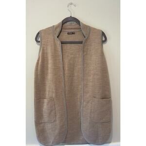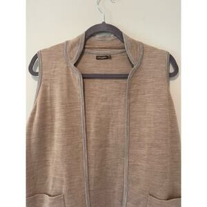 J. McLaughlin Sweater Vest Womens Small Beige Open Cardigan Pockets Long Wool