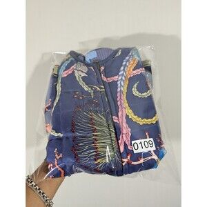 J. McLaughlin Sweater Women Sz S Blue Quilted Fron Silk Marine Nautical Jacket