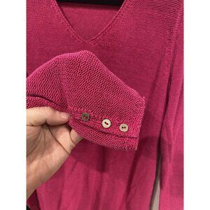 J McLaughlin Sweater Womens Small Pink V Neck Button Cuff Pullover Knit Top