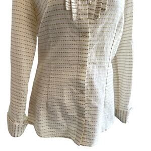 J. McLaughlin Sz 4 Ivory White Metallic Gold Button Down Blouse Shirt Small