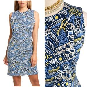J. McLaughlin Talavera Devon patterned sheath dress blue yellow tan size XS