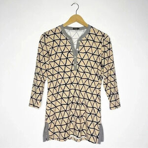 J. McLaughlin Tan Geometric Stripe Biscayne Blouse Size Small
