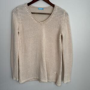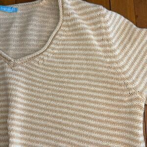 J. McLaughlin Tan/White Striped Tunic Sweater Size S