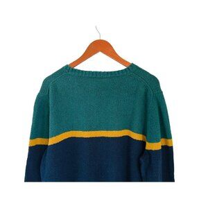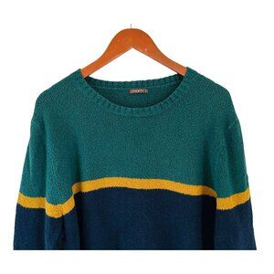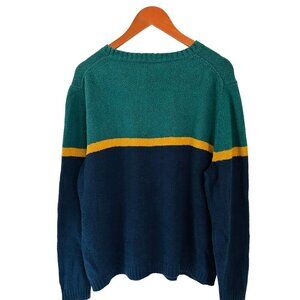 J. McLaughlin Teddy Sweater Cotton Color-Block Green Blue Preppy Soft - XL