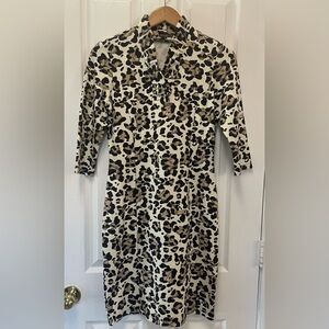 J McLaughlin Terin Sheath Dress Ruffle Neck Mozambique Animal Print Cream Sz XS