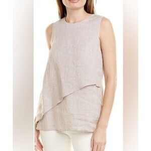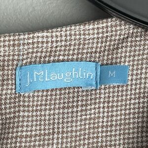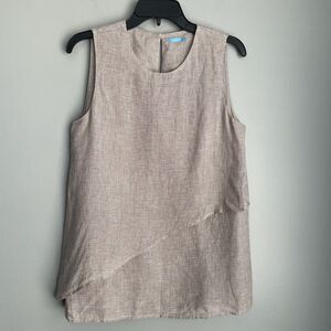 J McLaughlin Theodora Top 100% Linen Medium Tan Houndstooth Sleeveless Preppy