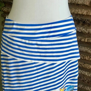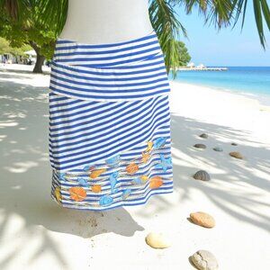 How fun is this striped tiered stretch skirt with seashell and seahorse motif.