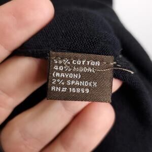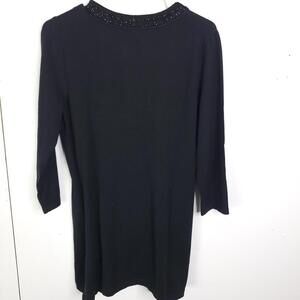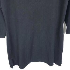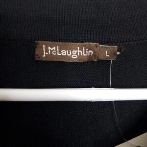 The J. McLaughlin Top in size Large features a Julie Jeweled Beaded Y Neck design with 3/4 sleeves, making it a stylish and versatile option for various occasions. This black blouse is a classic solid pattern with a V-neckline and a pullover closure. Made from a blend of spandex, cotton, and modal, this lightweight and stretchy tunic is perfect for the winter, fall, and spring seasons. Hand wash only to maintain its quality, this top from the J. McLaughlin brand is a must-have for your wardrobe.