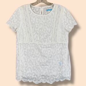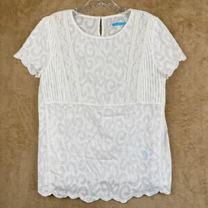 J. McLaughlin Top Womens S White Lace Embroidered Boho Floral Blouse Summer Soft