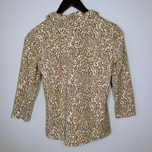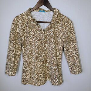 J McLaughlin Top Womens XS Brown White Durham Ruffle Neck Catalina Cloth Preppy