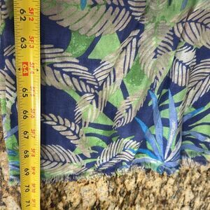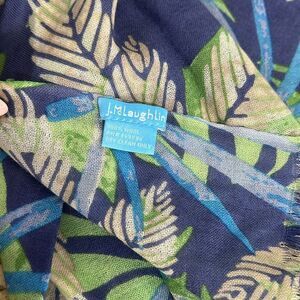 J. McLaughlin Tropical Leaf Print Fringe Trim Wool Scarf