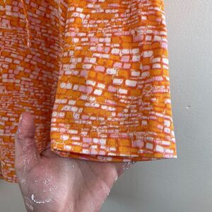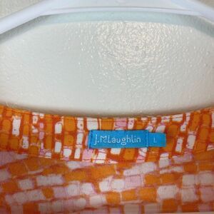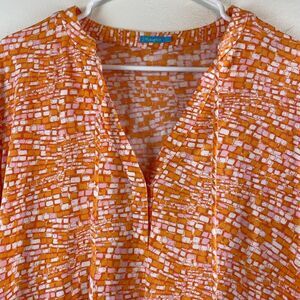J McLaughlin Tunic Top Orange White Geometric Cotton Sz L Pullover V Neck Beach