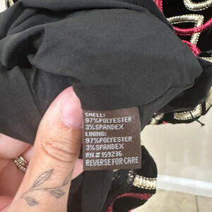 Such a stunning dress! Had great shape and weight to it. It’s in perfect condition, new without tags. The velvet and metallic combination is *chefs kiss*