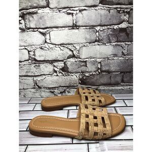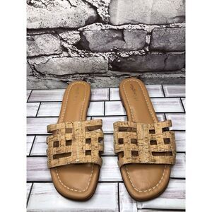 J. McLaughlin WILLA Tan Leather Cork Flat Slides Sandals Women Sz 7.5M US/37.5EU