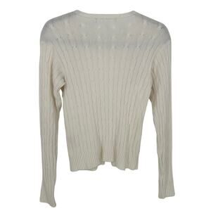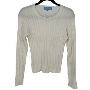 J. McLaughlin White Cable Knit Crew Neck Sweater Long Sleeve Crewneck Winter S