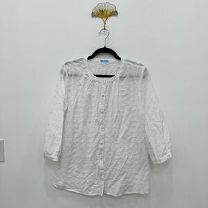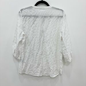 J. McLaughlin White Textured Button Cotton blend gorgeous lightweight Blouse SzL