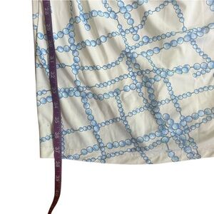 J. McLaughlin White and Blue Chain Print Dress Size Small Ruched 3/4 Sleeve