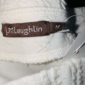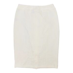This knee-length pencil skirt by J. McLaughlin is crafted in a sophisticated white fabric, perfect for both work and casual settings. Its fitted silhouette offers a sleek and polished look, making it an ideal choice for resort wear as well. The gold accents add a touch of elegance to this versatile piece.