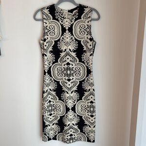 J. McLaughlin Women Elegant Black and Cream Patterned Dress Catalina cloth small