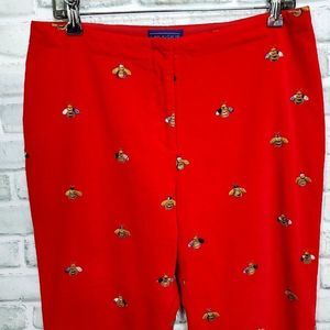 J McLaughlin Womens 12 Embroidered Bees Red Velour Straight Leg Pants Mid Rise