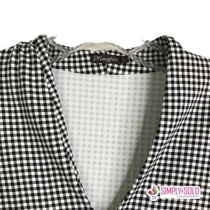 J. McLaughlin Women's A-Line Dress 3/4 Sleeve Black White Gingham Plaid V-Neck S