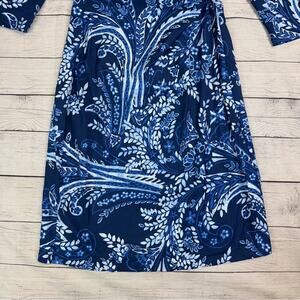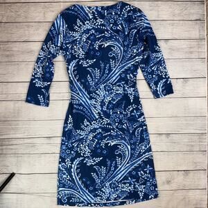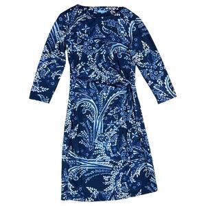J. McLaughlin Women's Blue Paisley Midi Dress with Boat Neck and 3/4 Sleeves XS
