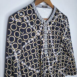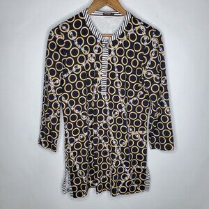 J McLaughlin Womens Catalina Cloth Geometric Chain Tunic Top Size M 3/4 Sleeve