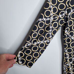 J.McLaughlin women's Catalina cloth tunic top in size M features a chic geometric chain design in black. Made of nylon, it has a comfortable fit with 3/4 sleeves.