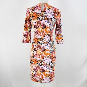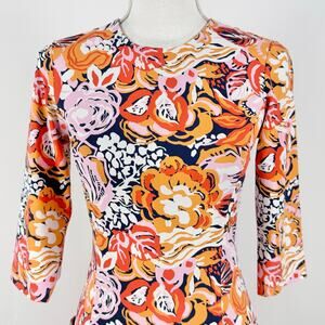 J McLaughlin Women's Catalina Knit Flora Sheath Dress XS Orange Pink