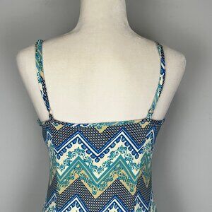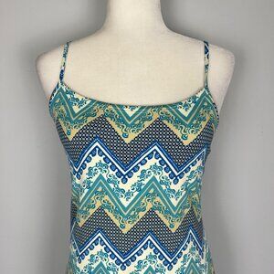 J McLaughlin Womens Geometric Chevron Print Slip Dress Blue Green size XS